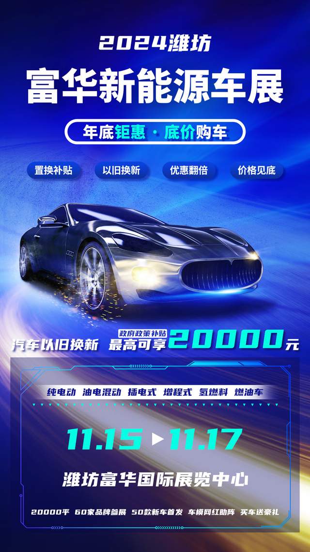 2024潍坊富华新能源车展将于11月15日至17日在潍坊富华国际展览中心盛大举行,届时将有超过50家参展品牌云集,为广大消费者带来一场新能源车购车盛宴。