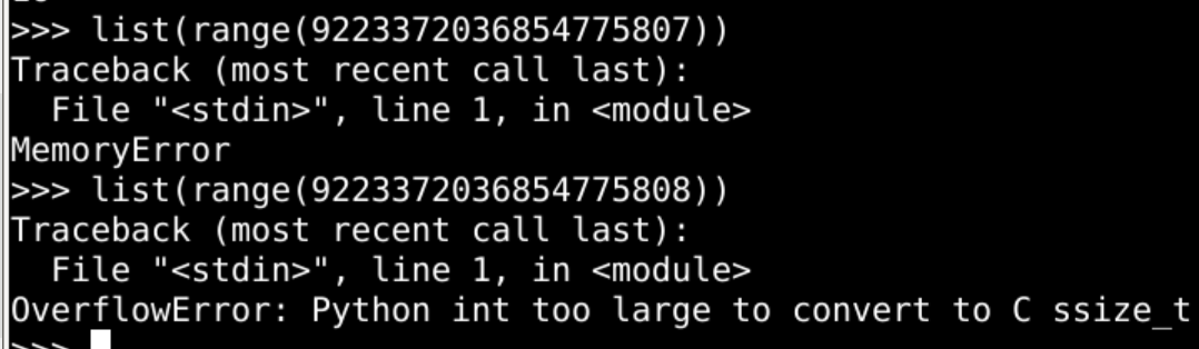 崩溃了list(range(9223372036854775807))list(range(9223372036854775808))