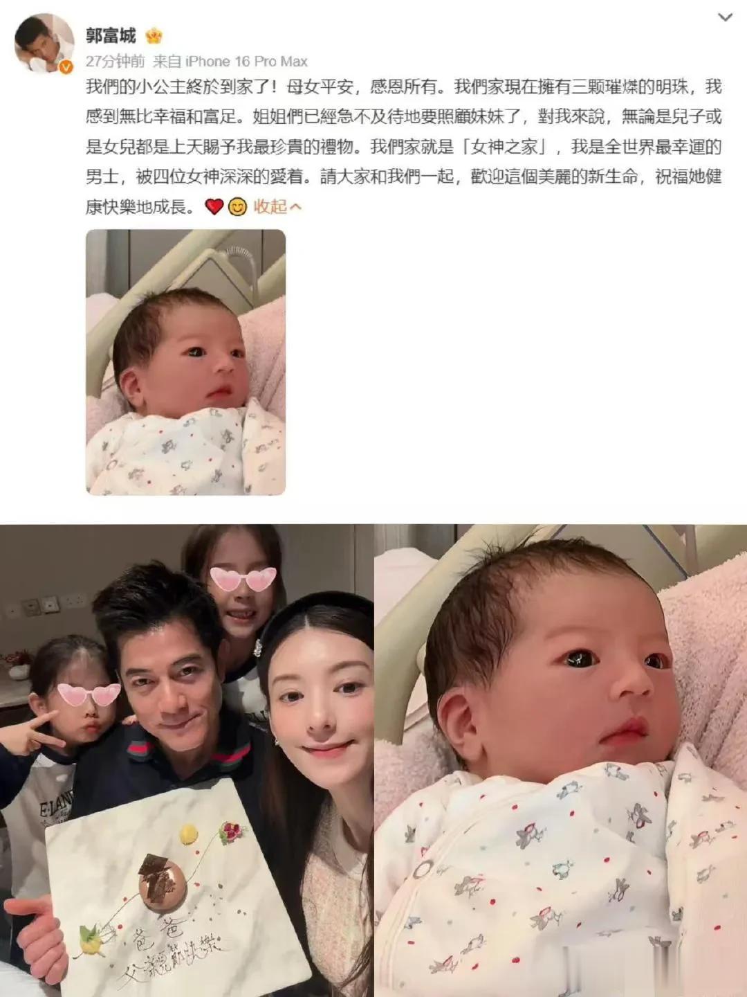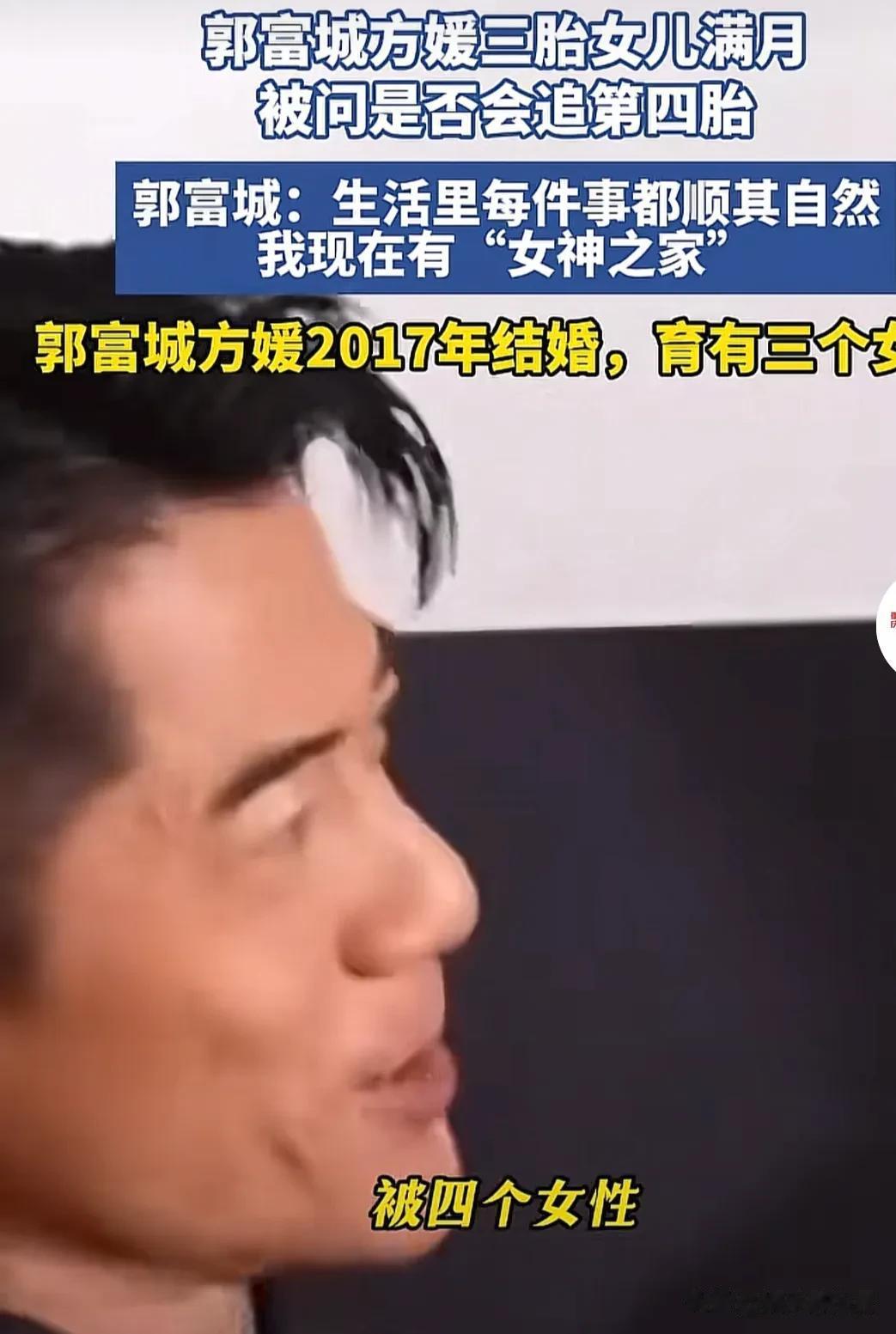 近日郭富城方媛三胎女儿满月,被问到会不会要第四胎,他说在生活里每件事都要顺其自然,这个回答你们看懂了吗?