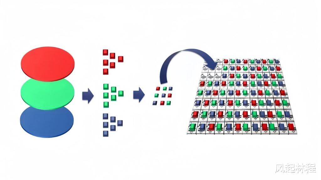 从发光原理和光学架构来看,MicroLED是自发光、无机材料体系,具有高亮度、高对比度、高寿命、光路简单等优势,这让它成为了大家心目中的“终极方案”。但MicroLED的量产难度却非常大,尤其是全彩的MicroLED光机,量产挑战巨大。通过X-cube棱镜合光方案,对准精度需要达到像素级,甚至亚像素级,这对工艺和良率都是巨大挑战。而单片三色MicroLED方案,距离量产就更远。