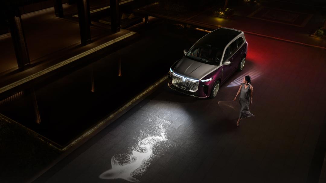 门把手嵌了24颗灯珠,迎宾光毯投射山水纹理,尾灯里藏了“山海倒影”的意象。
