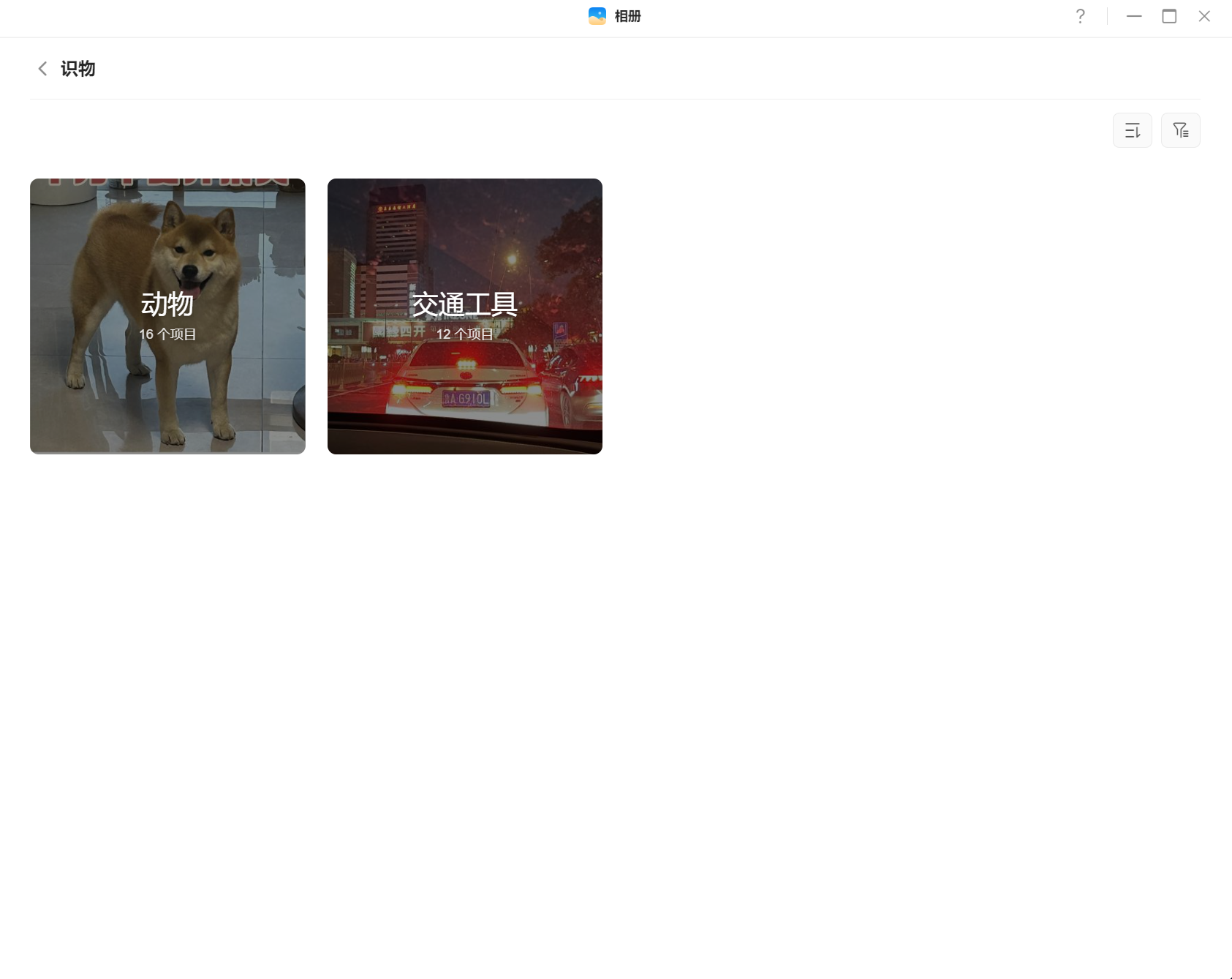 除此之外,我们还可以根据自己的需求通过「宠物识别」「场景、物体识别」等功能分别自动生成动物、交通工具等专属相册。