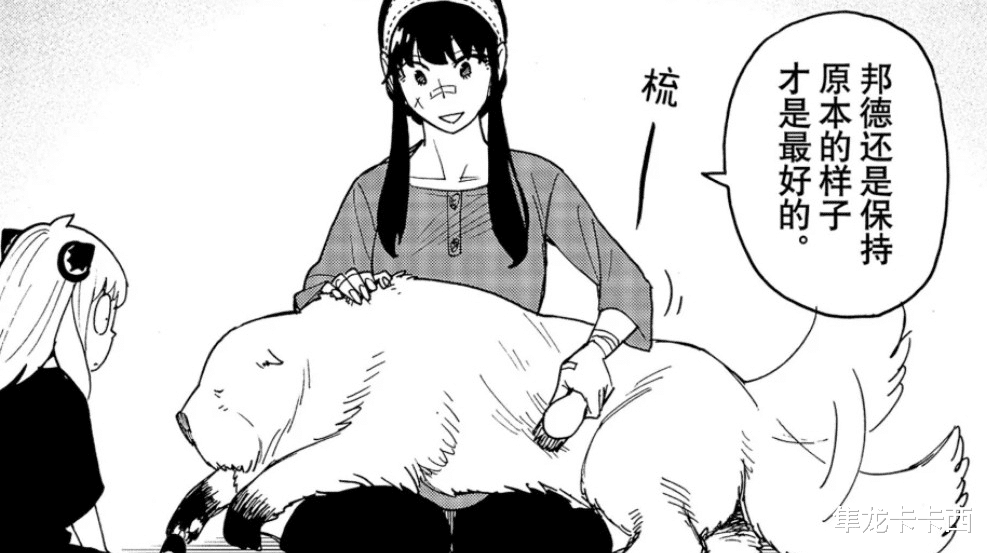 最后是超有爱的梳毛环节,不过这里有个好玩的地方,话说太太是不是忘了,给邦德梳毛的刷子和给阿尼娅梳头用的是同一个......