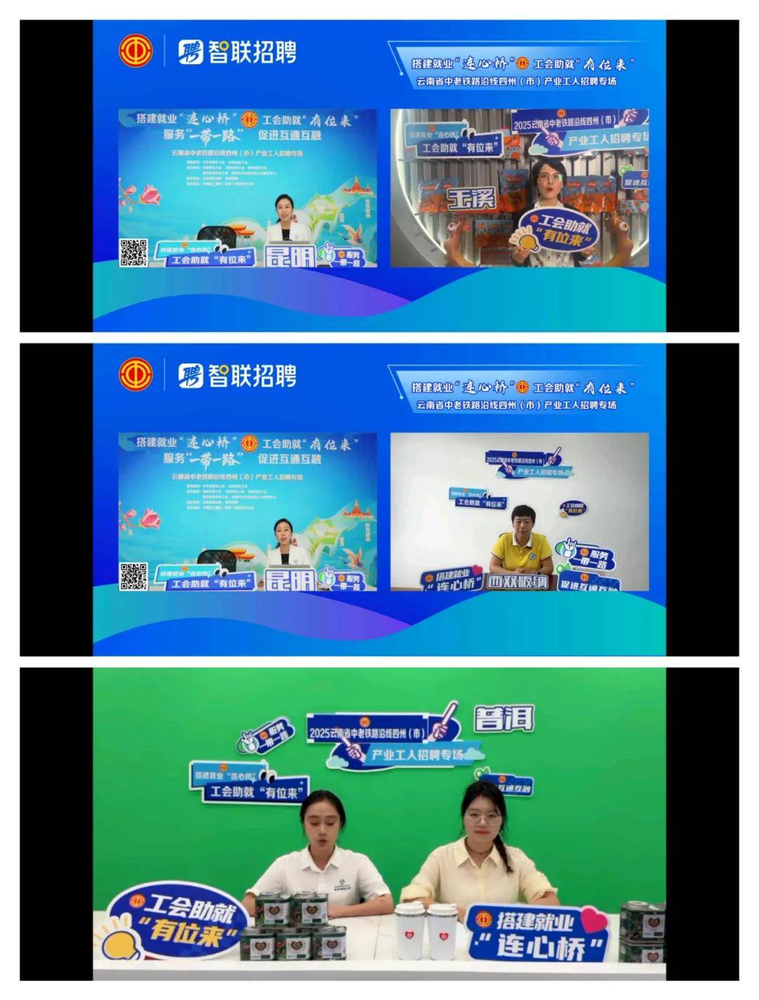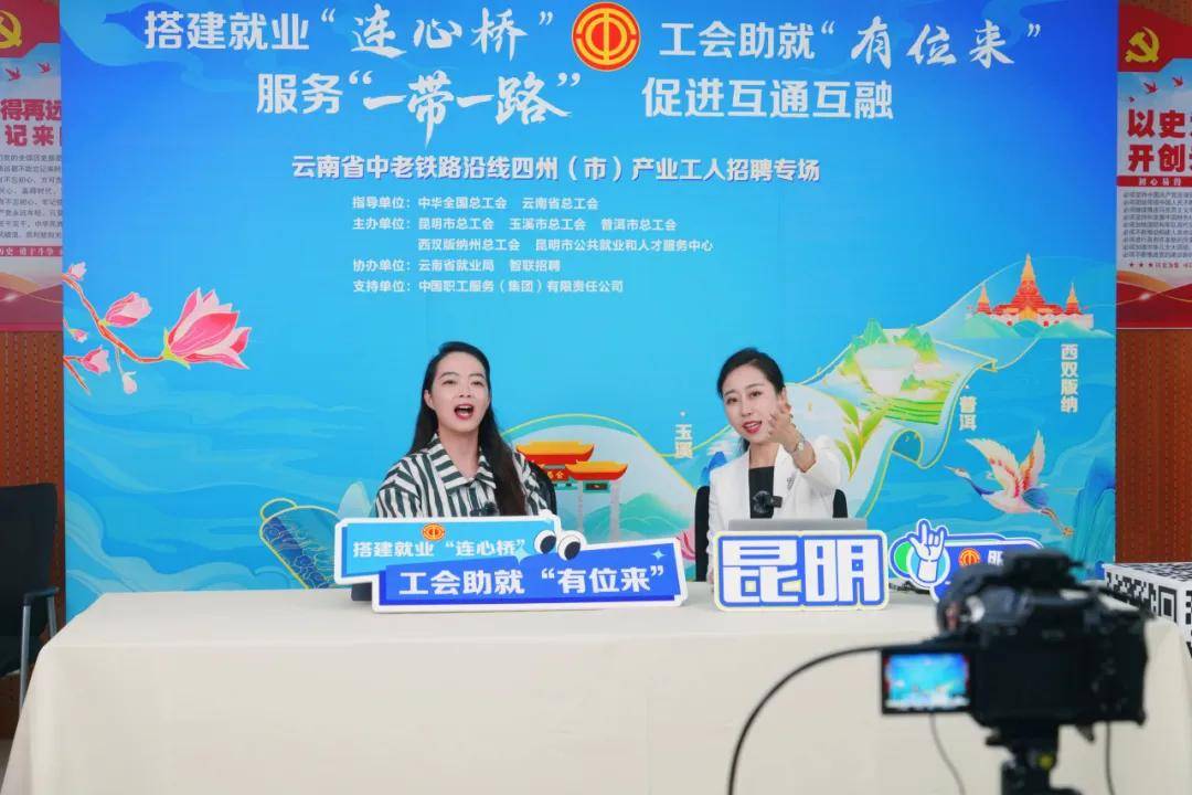 为深入贯彻落实习近平总书记关于产业工人队伍建设改革的重要指示精神和对中老铁路“四好”指示精神,推进沿线州市在人才培养、区域劳动力的“精准对接”“错位共享”和人才流动互通互融、人才开发互利互惠,构建区域产业工人一体化发展格局,10月15日下午14:00,在中华全国总工会、云南省总工会指导下,由昆明市总工会牵头,联合玉溪市总工会、普洱市总工会、西双版纳州总工会及昆明市公共就业和人才服务中心共同开展的中老铁路沿线四州(市)产业工人招聘专场直播活动圆满落幕,以“云端就业桥”为沿线产业发展与劳动者就业注入工会力量,是云南省首场中老铁路沿线四州(市)产业工人招聘专场直播活动。本场直播活动直播间通过全国总工会“职工之家 App”、云南省就业局“就业彩云南”微信服务号、昆明市公共就业和人才服务中心抖音号及智联招聘平台4个平台观看人数共计达4.1万人次, 互动留言上千条,形成“求职有门、咨询有应”的热烈氛围。