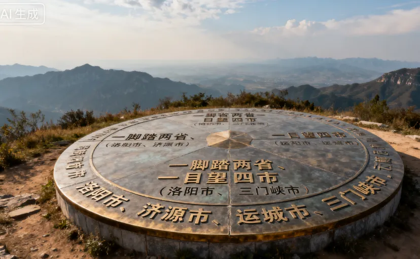 ✅ 两省四市界碑:一脚踏两省、一目望四市(洛阳市、济源市、运城市、三门峡市)。