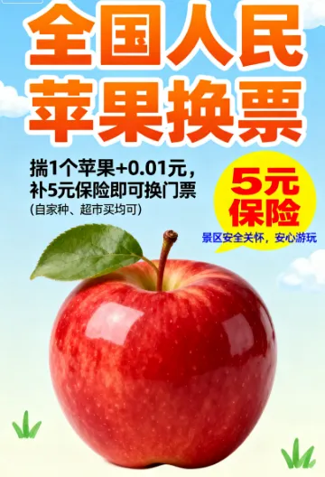 不用羡慕洛阳朋友啦!现在揣 1 个苹果 + 0.01 元,补 5 元保险就能 get 门票!自家种的、超市买的都 OK,主打一个接地气。这 5 元保险必须夸!景区怕咱上山不安全,花小钱买安心的细节太戳人~