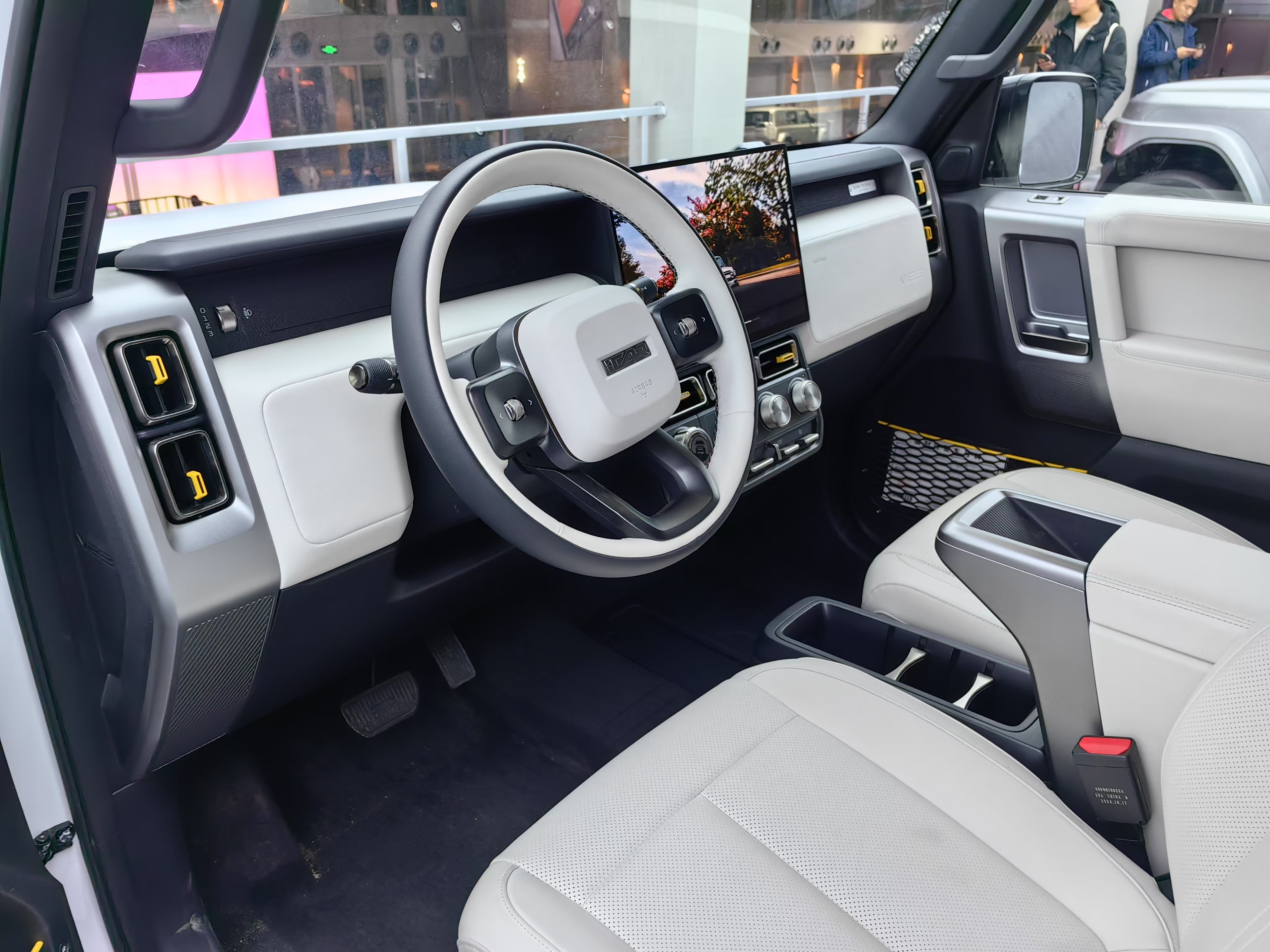内饰的设计则体现了“数字智能+机械主义”的设计理念。座舱采用大面积皮革材质软包,提供黑、白、绿三种配色主题,满足不同消费者的个性化需求。中控大屏幕下方保留实体旋钮和按键,造型精致且阻尼清晰,既提升了盲操便利性,又为整车增添几分机械美感。