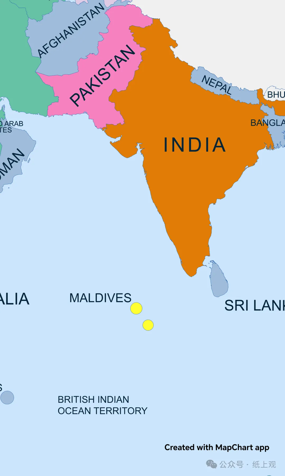 第三个层级是“战略伙伴”,这一层级数量最多,我在地图上用偏蓝色标记。到这一层级之后,“合作”二字彻底变成了定语,代表着双方有重要的合作项目、框架,或者存在一定竞争协商与包容。带有“合作”定语的有8个,其中有韩国、阿富汗、尼泊尔等。