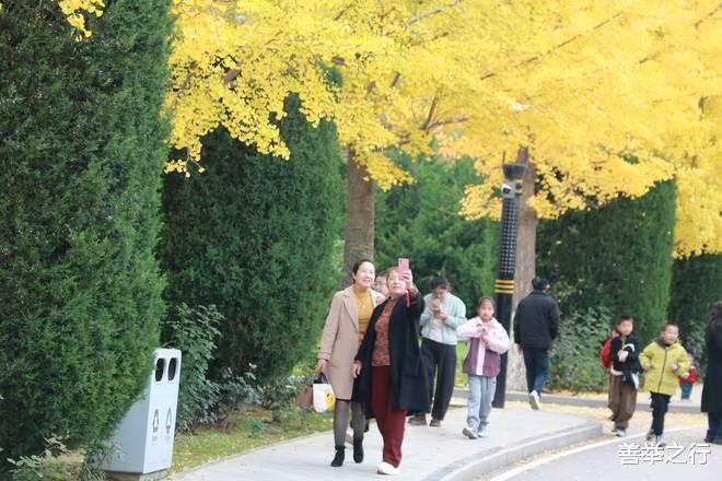 2025年10月26日周日,平凉天气晴好,民众到广成大酒店院内赏秋景度周末