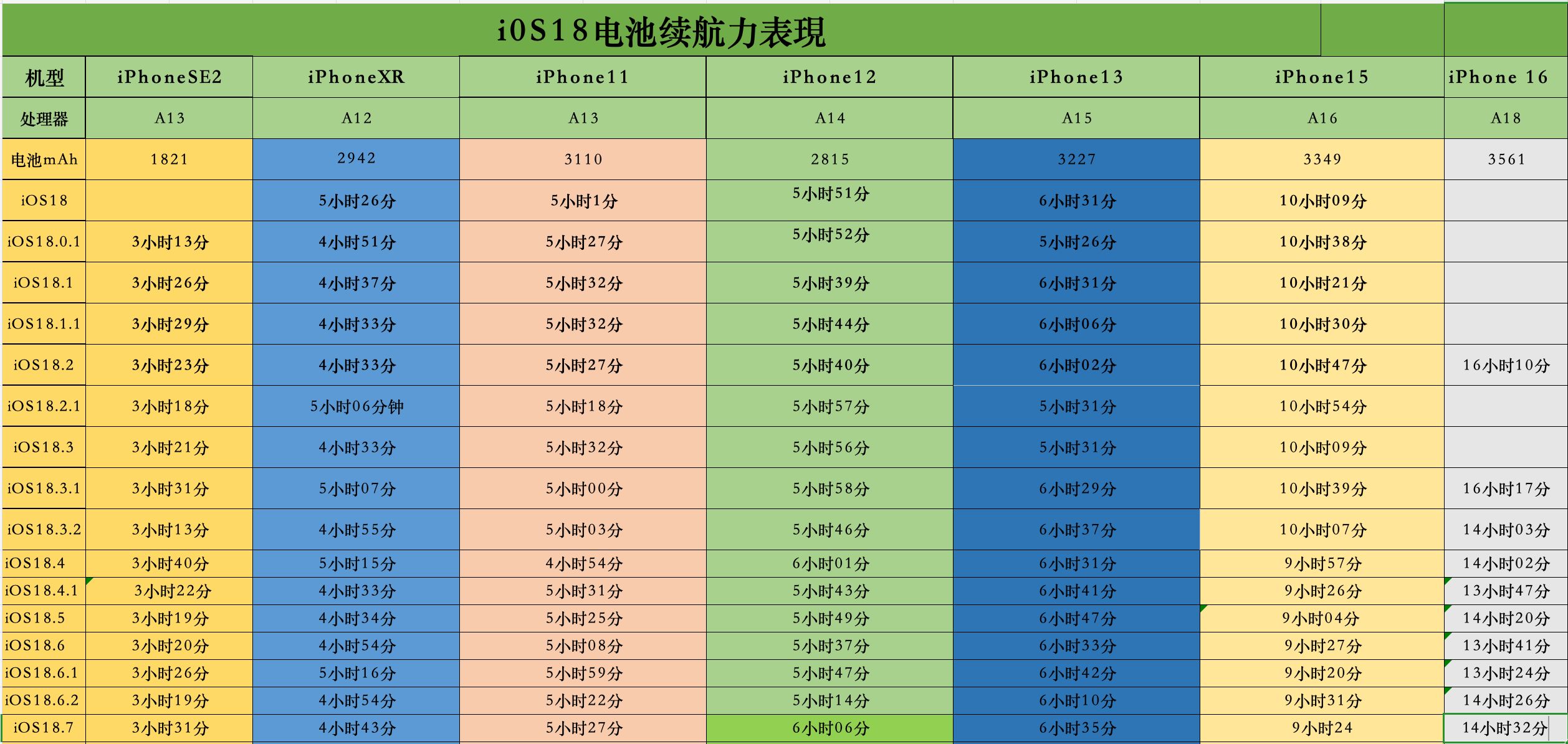 iOS18.7和iOS26同时发布 ,很多人纠结是更新iOS18.7还是iOS26版本,前两天更新iOS26续航实测,今天更新一下iOS18.7续航实测,到底哪些机型可以留在iOS18.78养老。