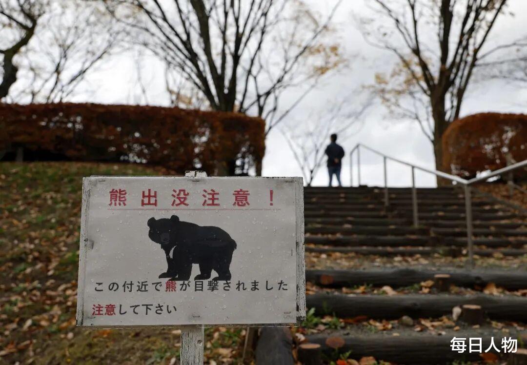比如你想去北海道玩,一个看起来很正常的路上,有可能遇到熊。你在公路上开着车,突然看到一个标牌,上面日文你看不懂,但能看见上面画了个熊。要是仔细观察,那个牌子如果很老旧的话,说明附近一直有熊出没,如果很新,就是熊最近才出现的。这几个月,日本各地都出现了一些新的牌子。