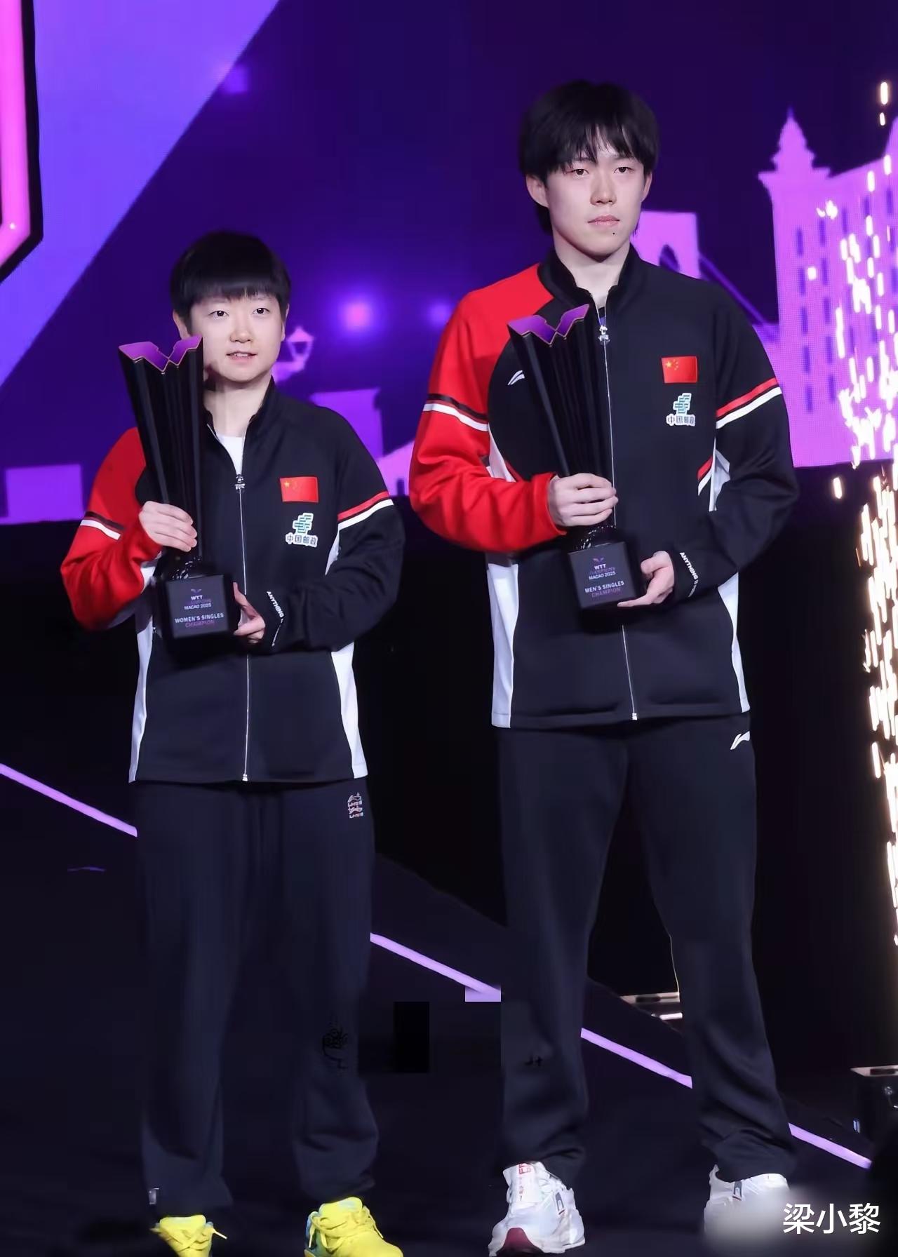 而只有在3月的重庆冠军赛、5月的多哈世乒赛、9月的澳门冠军赛,两人才有机会同台冠军合照。