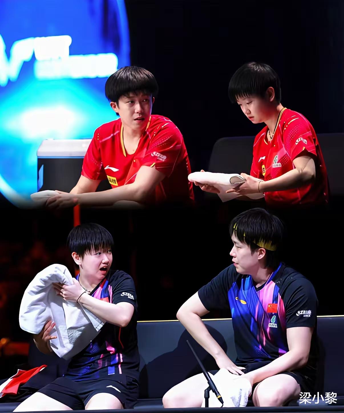 换一句话说,就是王楚钦输了,后面的女单谁赢都行; 如果王楚钦赢了,女单冠军必须是孙颖莎。