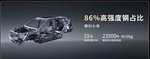 车身强度是安全的核心支撑,这款车采用笼式结构设计,86%高强度钢+21%热成型钢的配比在同价位属于中上水平(不少竞品高强度钢占比仅75%左右),车身扭转刚度达23500 N·m/deg,碰撞时能有效减少变形,为车内预留充足生存空间。侧面防护上,越野车同款的一体式热成型双门环、四门防撞钢板,能在侧面碰撞时分散冲击力,避免车门侵入座舱。