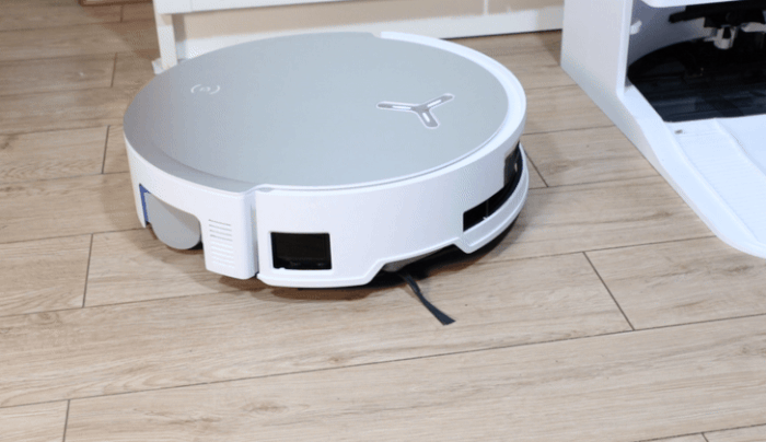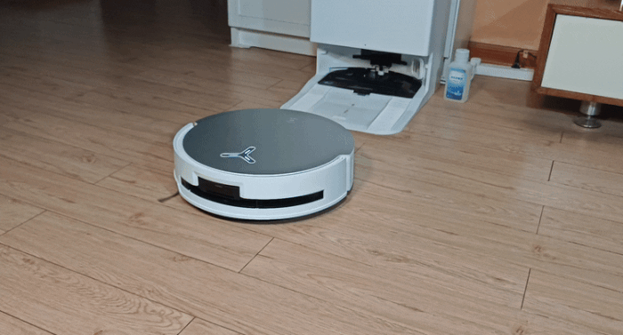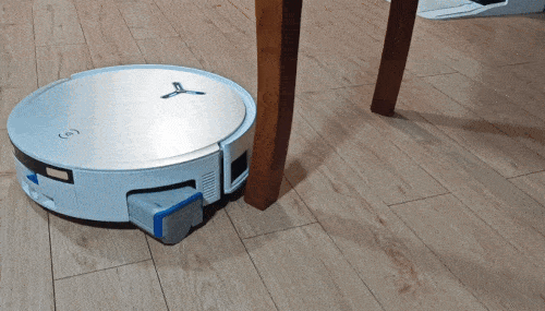 当感知到前后腿间距足够时,就果断进入。特写视频中显示,科沃斯地宝并不急于脱离椅腿丛林,而是游刃有余地在椅子下方完成全面扫拖覆盖。