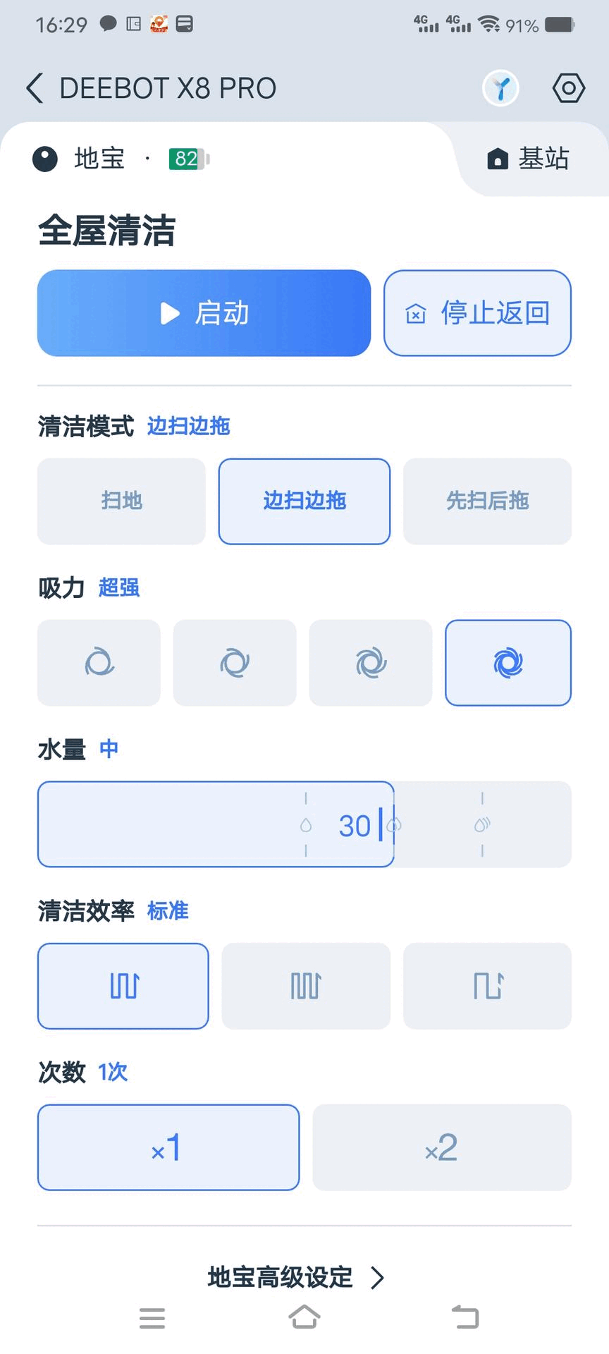 手机APP,随心定制: 通过科沃斯智能家居APP,您可以随时随地查看地宝X8 PRO的运行状态,并进行预约清扫、区域划分、虚拟墙设置等个性化定制。你甚至可以远程遥控,让地宝X8 PRO在您回家前完成清洁。