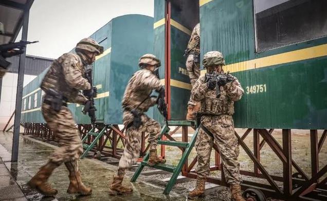 近日,武警贵州总队某支队紧贴实战要求,组织特战分队开展了一场以火车反劫持为背景的反恐实战综合演练。