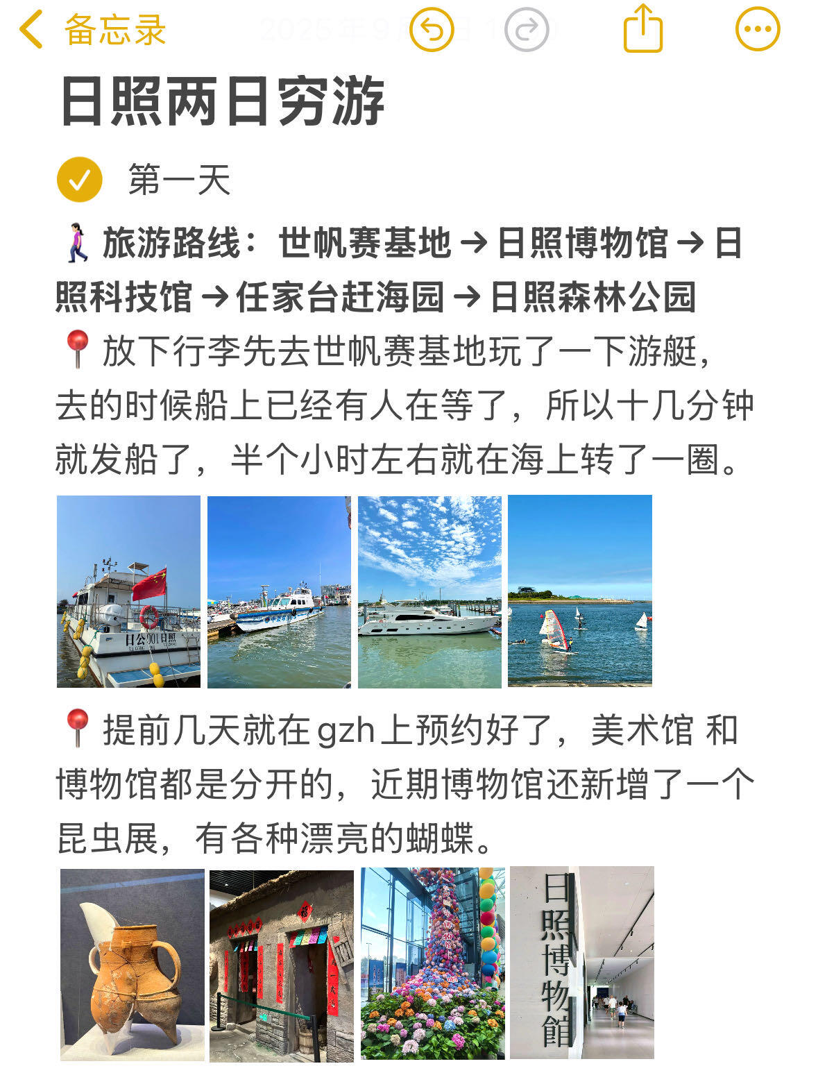 🚶🏻♀️旅游路线:世帆赛基地→日照博物馆→日照科技馆→任家台赶海园→日照森林公园