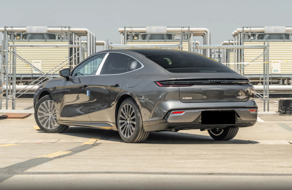 得益于5018毫米的车身长度,在侧身的设计上,银河星耀8会给人一种较为狭长的视觉效果,同时侧身的线条处理上,该车也是简洁的设计,配合隐藏式门把手和低风阻轮毂以及溜背式车顶线条的设计,让车辆整体的运动质感更加的出众。至于尾部设计上,银河星耀8的尾灯组也是熏黑式的贯穿设计,而后包围则是亮黑色的装饰条,让车辆整体的精致程度更甚。