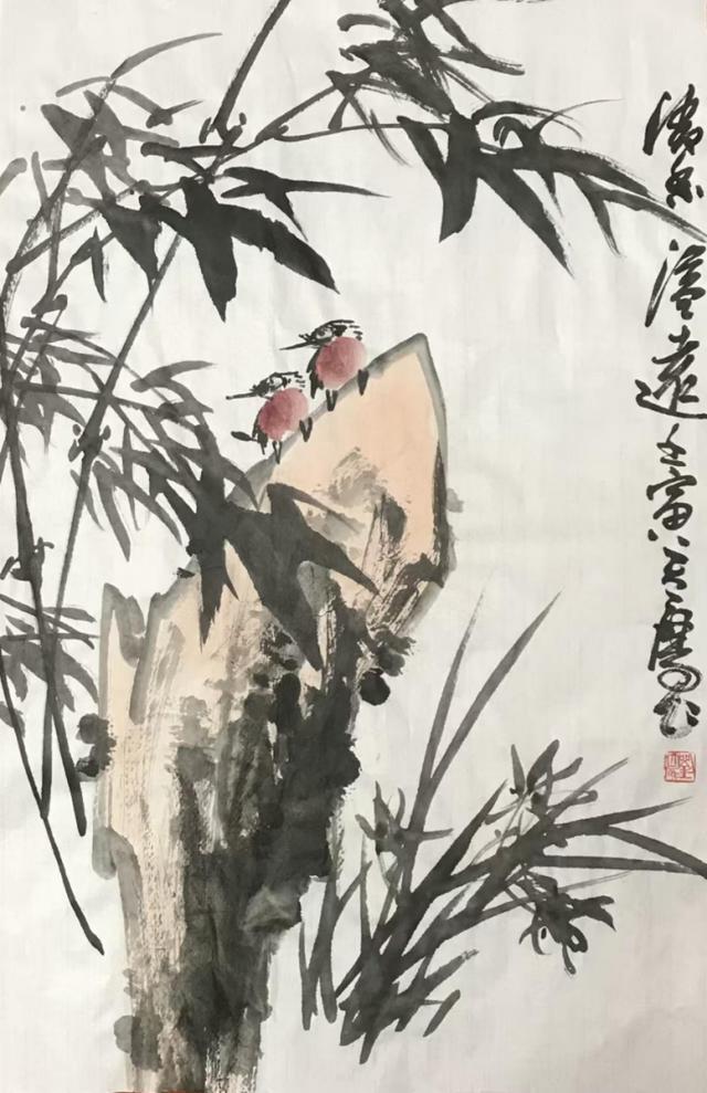 天鹰的画雅俗共赏,尤其是“花鸟画”,已达到很高的境界。看天鹰作画是一件很惬意、很享受、开眼界、长知识的事情。就像窗前品茶,时而听雨荷观劲竹,时而赏金菊看雪梅……