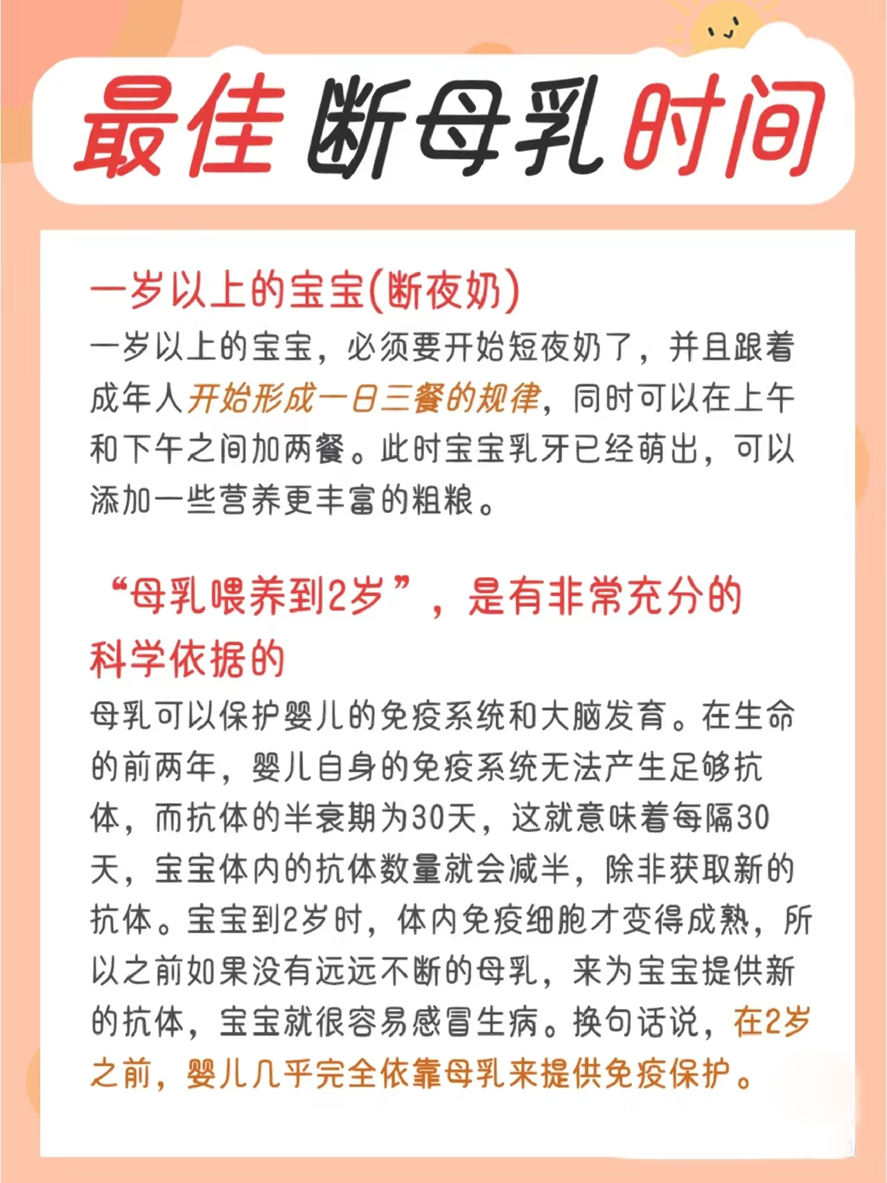 实际上,最合适的断奶时机取决于宝宝的发育阶段、母亲的状况和亲子双方的准备程度。大多数宝宝在1岁到2岁半之间会自然表现出断奶信号,这是一个渐进的过程,而非某个具体的时间点。