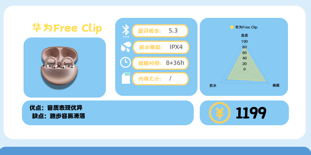 推荐理由:创新性耳夹式设计,AI降噪通话没烦恼。
