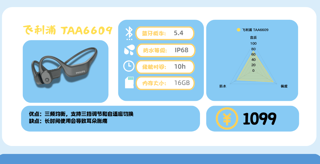第十款:飞利浦(PHILIPS)TAA6609骨传导蓝牙耳机