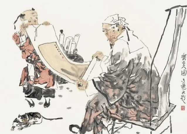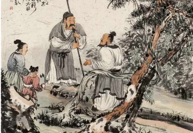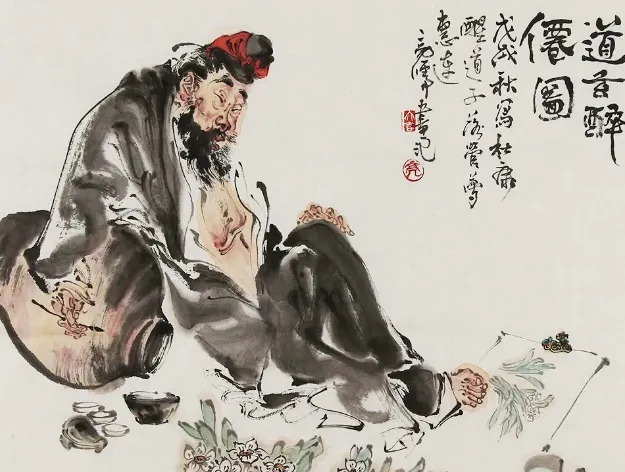 韩信饿着肚子城下钓鱼,河下漂母看他可怜,请他吃饭。