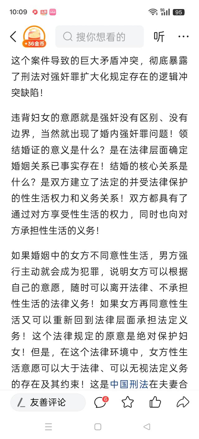 如果不消除现行强奸犯罪法律条款的这一缺陷,不知会有多少婚内强行一与妻子过性生活的丈夫,会因为妻子的报警,司法介入而因此获罪?