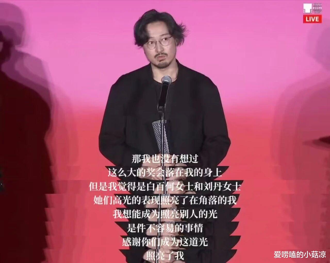 对此,关谷神奇在领奖时称自己恐惧成为焦点,感谢白百何女士与刘丹女士,是她们的高光表现照亮了自己,这段发言也被审判为茶艺大师。