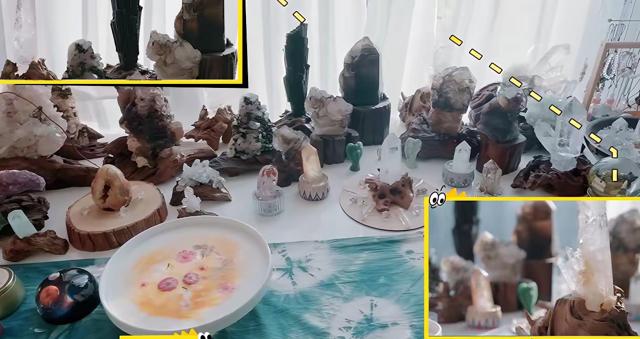 甚至在家里还安排了一个水晶房,里面放了各式各样的水晶,真是涨见识了、原来明星家里的水晶可以如此之多、如此之大。