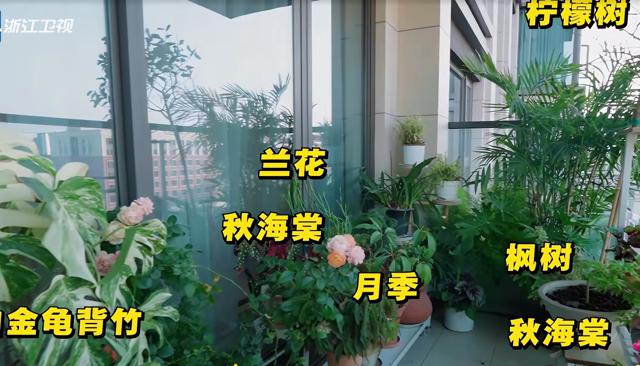 白色的展示柜,放了书籍和摆件。阳台上种了枫树和柠檬树,以及各种花花草草,她每天都会给植物们唱歌。