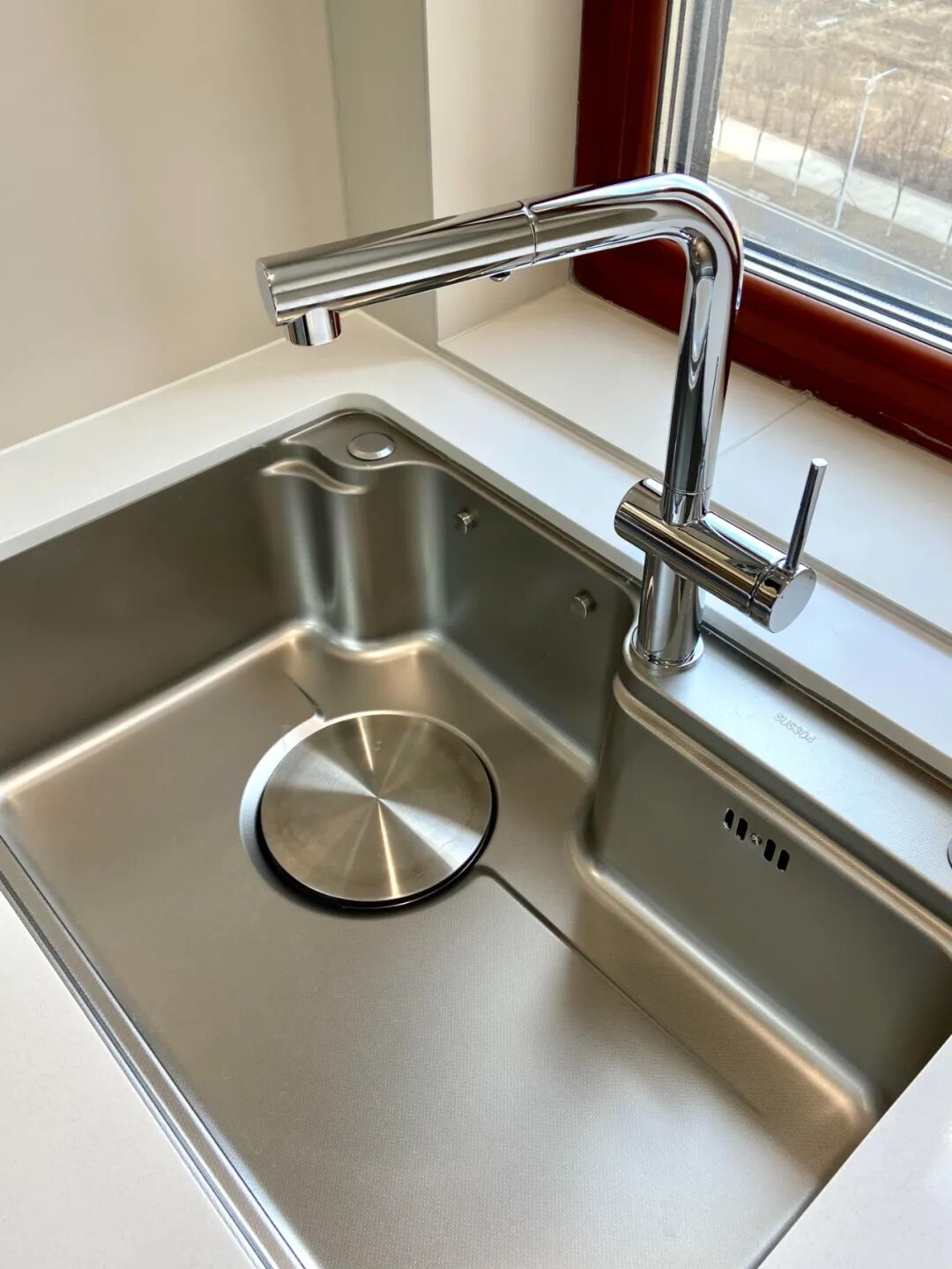 这种单槽设计容量超大,不管是炖锅、烤盘还是整摞碗筷,都能轻松放进去,清洁时不用束手束脚,台面也不容易积水。而且单槽搭配一个可伸缩水龙头,洗东西灵活又方便,省钱还实用,住得越久越觉得值!