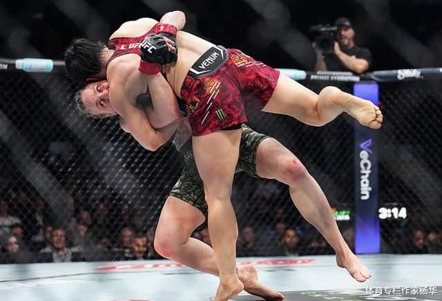 从比赛过程看,张伟丽无论站立和地面都占不到便宜,甚至可以说全场没有任何机会。站立环节打泰拳出身的子弹姐拳腿准度更高,以迎击反击为主,不与张伟丽换拳。而在摔法上子弹姐非常出色,多次将张伟丽摔倒抢占上位。