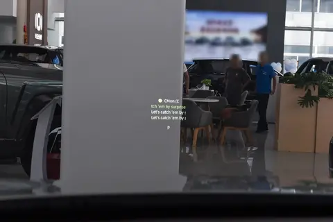 来到深蓝S05的车里,可以发现中控上是没有仪表盘的,深蓝S05用的是AR-HUD抬头显示吗,比普通的在白天的显示效果更为清晰。深蓝S05的中控、车门板还有扶手这里都用到了皮质的软包,触感十分的柔软,也提升了车里的豪华感。平底式的多功能方向盘可以手动调节位置,并且上面的按键很有质感,可以一键打开全景影像等功能。深蓝S05的扶手这里是手机无线充电板,后面是杯架和扶手箱,下面是镂空的除了可以放东西之外,还有充电接口。深蓝S05的车里有行车记录仪,车里的后视镜有防眩目的功能,主副驾驶都有化妆镜,即便是在晚上打开照明灯依旧可以化妆。深蓝S05的车内一共用到了14个扬声器,有天空声道之后音质更加立体通透。深蓝S05的车内有64色的氛围灯,不同的颜色带来的视觉感受也不同,我个人觉得紫色是特别好看的。