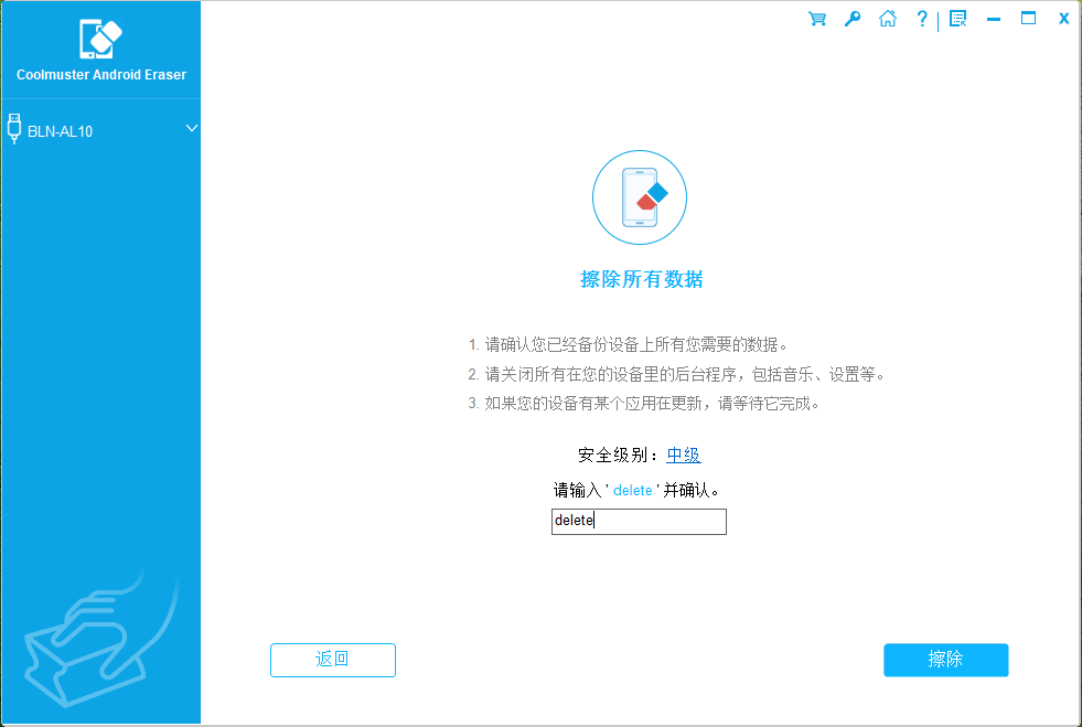 警告:本软件将彻底清除您的所有数据,因此请提前备份重要数据。