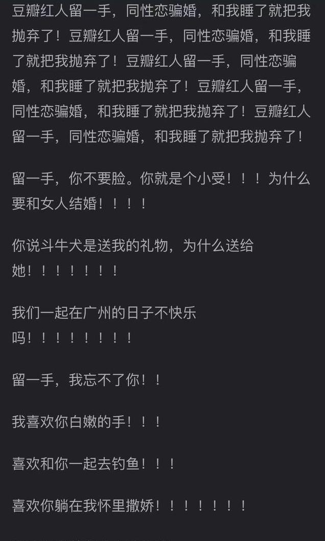 爆料里称豆瓣红人留某某,TXL骗婚,是个小受,和他睡了就把他抛弃。