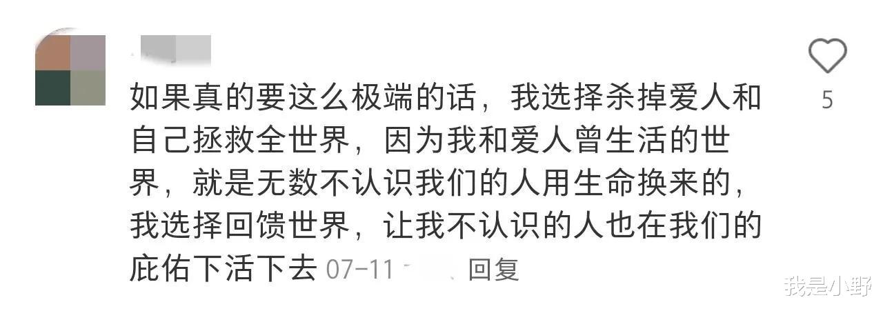 “救世界还是救爱人”这个问题,其实是拥有和电车难题一样难解的难题。