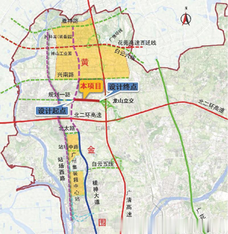 本项目的建设将加强站场西路、槎神大道与龙山立交的直接交通联系,实现快速衔接北二环和广清高速,使江高镇车辆可通过槎神大道快速接入广清高速,显著提升镇域至广州中心城区清远、佛山等方向的通行效率。