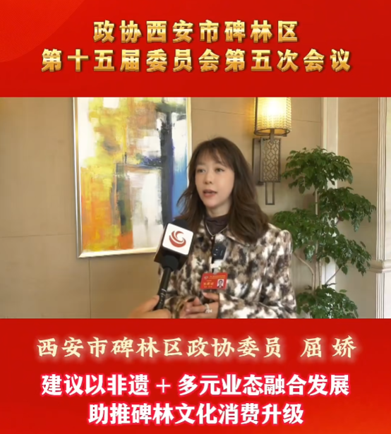 屈娇委员自任职以来,积极参政议政、建言献策,在这个凝聚共识、共绘蓝图的重要平台上,提交了题为《建议以非遗+多元业态融合发展助推碑林文化消费升级》的高质量提案,用实干担当诠释政协委员的初心使命。