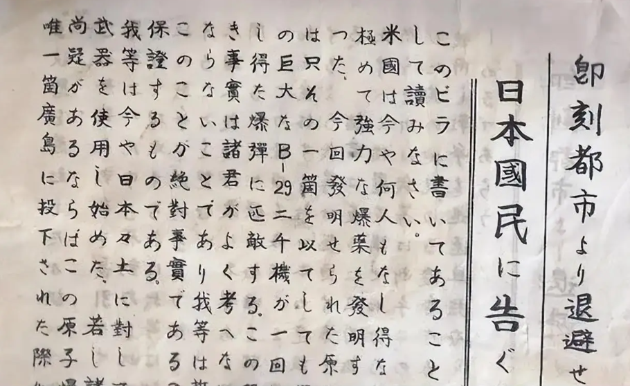 1945年7月,一架美军B-29轰炸机在日本上空盘旋,机舱内倾泻出漫天纸片。这些印着日语的传单飘落在广岛街头,被一个女孩拾起:“请仔细阅读,这关系到你们的生命安全……这些城市将被一种新型炸弹彻底摧毁。”