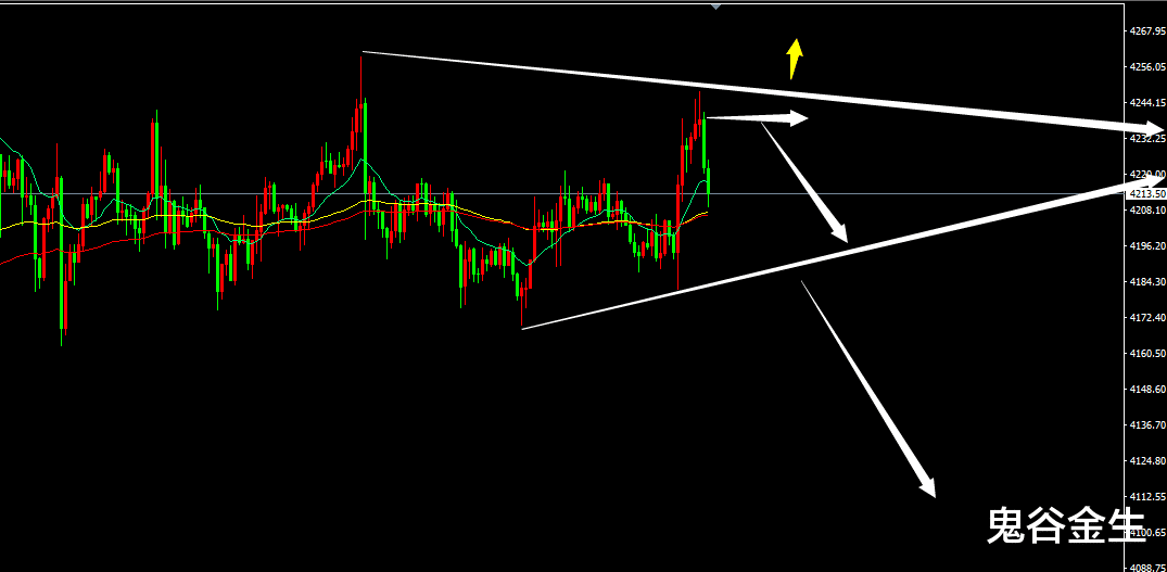 昨日原本计划夜战,但是精力跟不上,不过走势符合预期,快速震荡后顺势拉升,截至目前最高4247附近,力度对比上一波降息有所降低,是多头能量耗尽了吗?现在突然斗转直下4210,多翻空或许开始了,其实早间上攻力度不够大,鬼谷就有所怀疑,只是当时确实是多头,再加上白银新高不断,所以不认为空头会很快到来,但是现在既然来了,就不要一根筋再去看涨了,顺势才是王道,出多进空才是i首选;