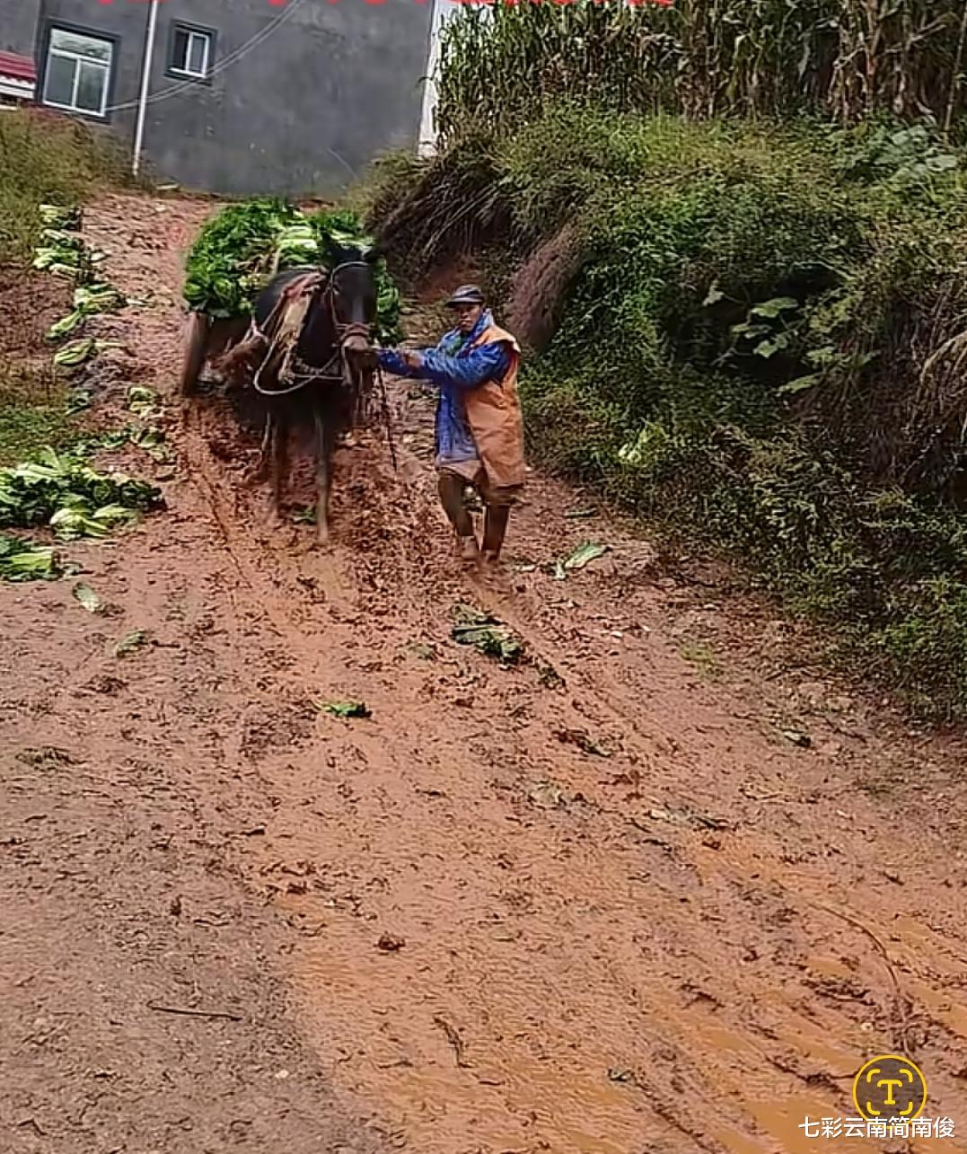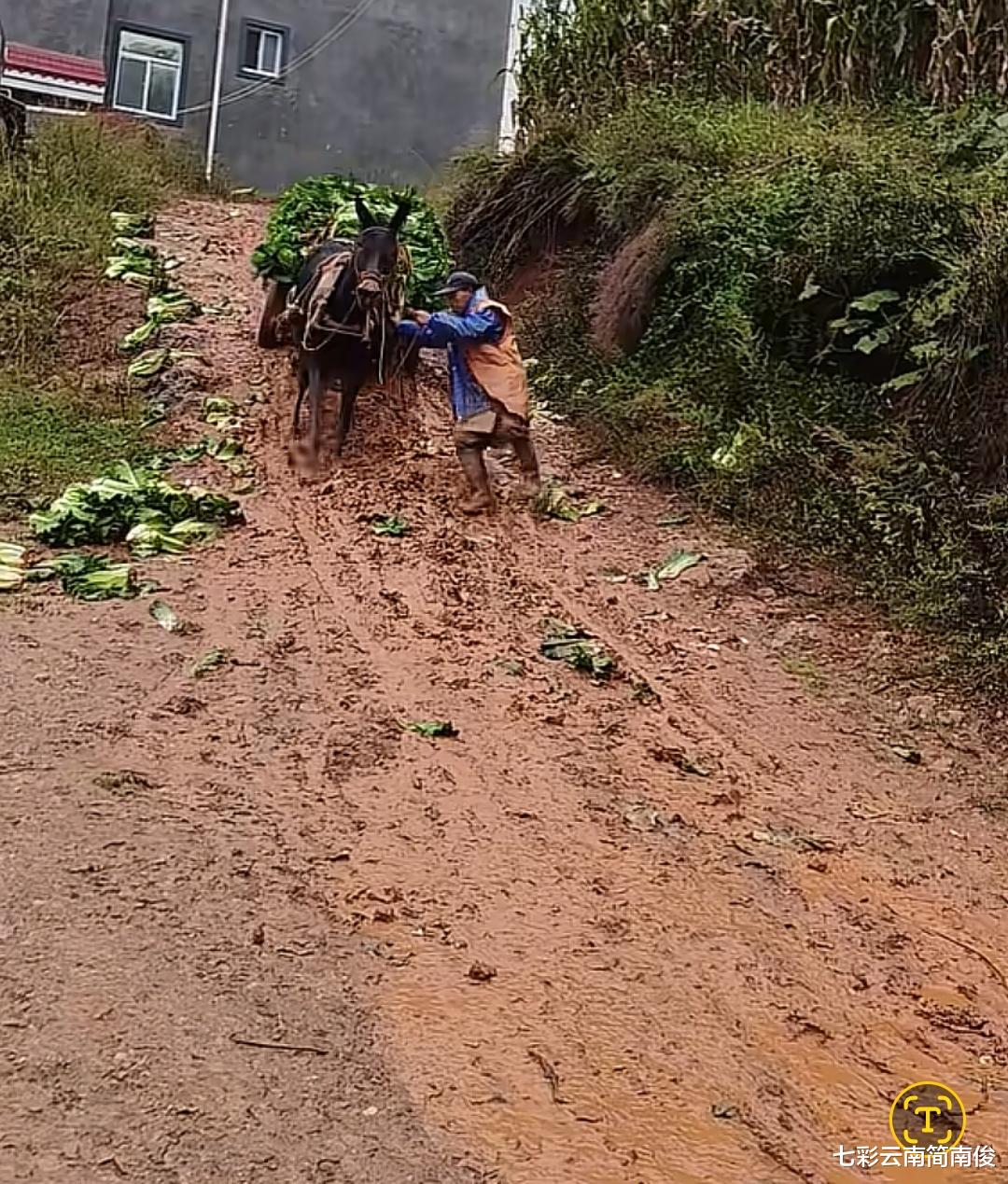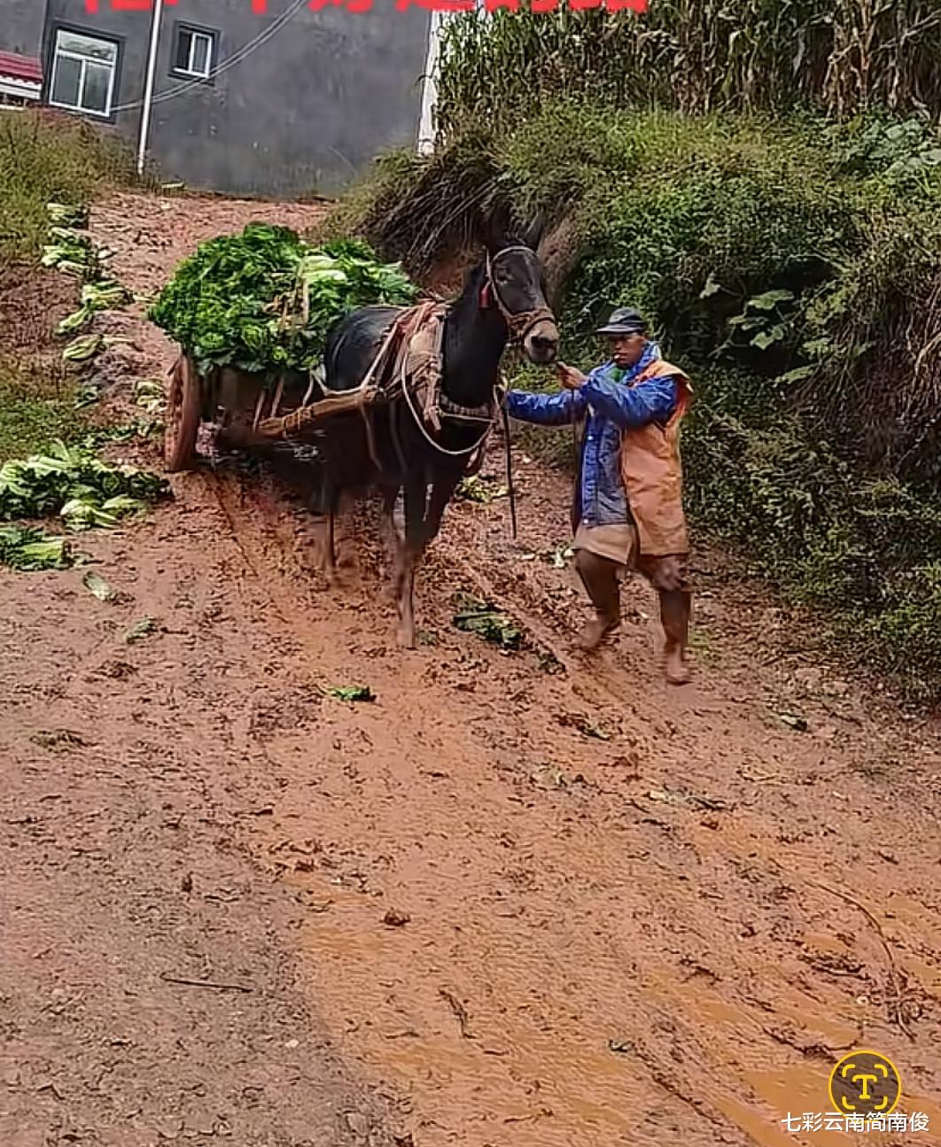经观察获悉,近日,云南省一菜农牵着马匹走下坡路,道路泥泞不堪,马匹负重前行,现场画面令人泪目。据现场拍摄画面显示,马匹拉车驮运着一车大白菜,乡间土路泥泞不堪,马匹负重前行行走在路上,云南菜农牵着马匹,纯朴的乡土画面闪现眼帘,催人感叹“最苦最累是农民”。云南省相关人士表示,马车是云南广大乡土地区用于劳作的交通工具,二三十年前很常见,没想到如今还有马车出现。经了解,云南广大乡土地区通常用牛耕地,用马拉车,可谓物尽其用,因地制宜。如今科学技术日益发展,人民生活普遍提高,没想到还有菜农用马拉车,引人追忆远去的时光。云南菜农用马匹运送白菜,道尽了云南广大地区人民群众生活不易的现实,作为务农人员,全靠双手和辛劳致富,向云南广大地区务农群众致敬!