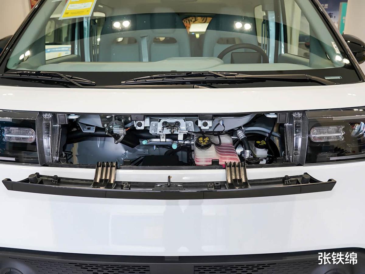 而其前置电机、中置电池组、整体桥+钢板弹簧的后悬架结构,确实让后桥后部有了有了一定的剩余空间,当然,在不改变后备箱地板结构的情况下,这个空间也是不足以放置大体积的发动机,因此选择了体积小一些的摩托车发动机,另外增程版的车身高度相比电动版增加了38mm,预计是对后悬架行程进行了抬升。