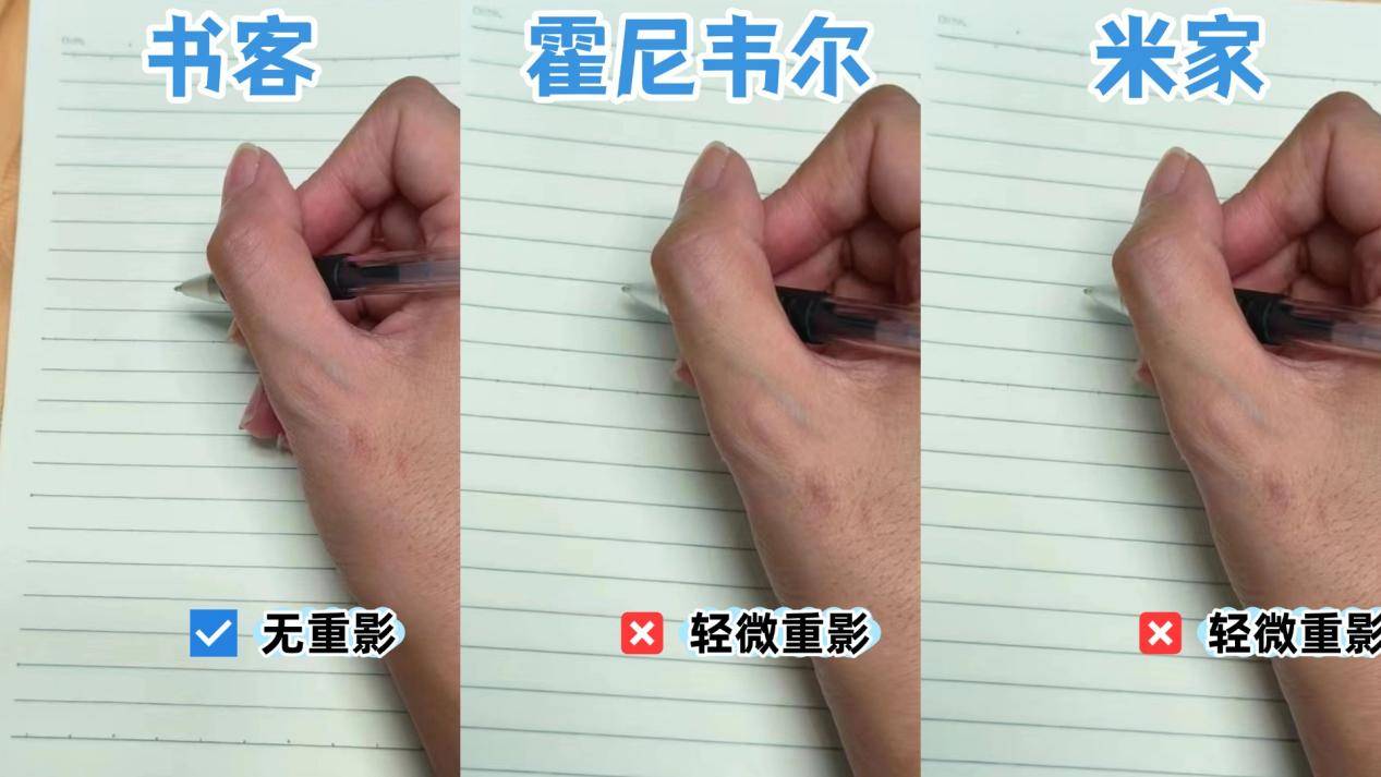 从实测中我们可以看到,其中书客SUN2这款护眼大路灯呈现的是没有重影的视觉感,而其余2款都出现了轻微的重影。