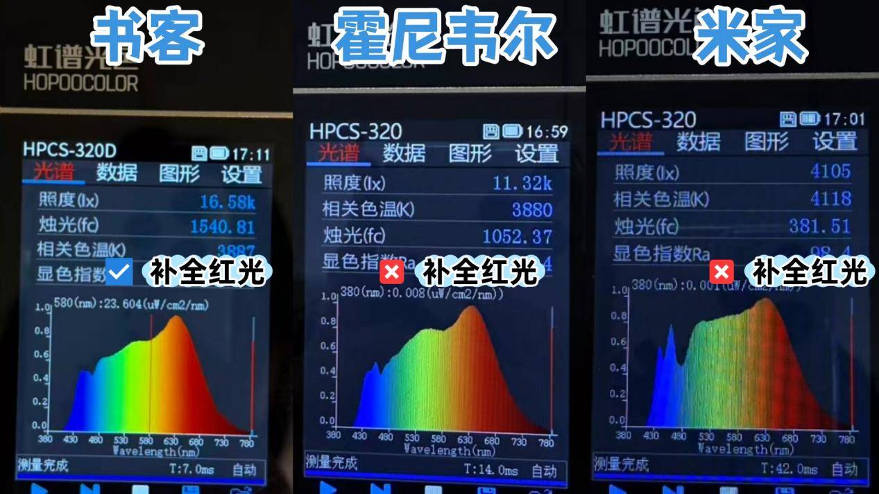 实测原因:如果光谱不完整,往往会出现蓝光过强、红光缺失等问题,不仅会导致光线呈现受到影响,还会让造成视觉疲劳,够眼睛带来近视风险,造成不可逆的伤害。