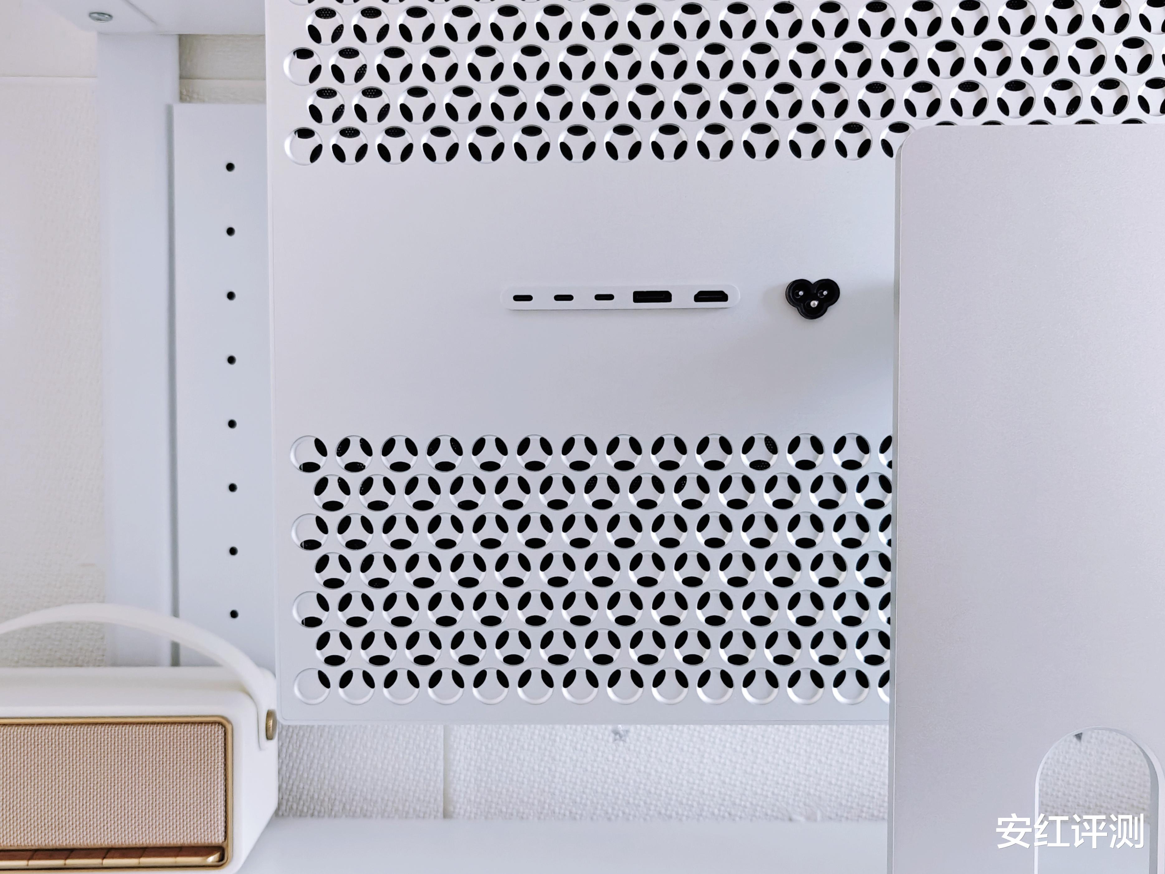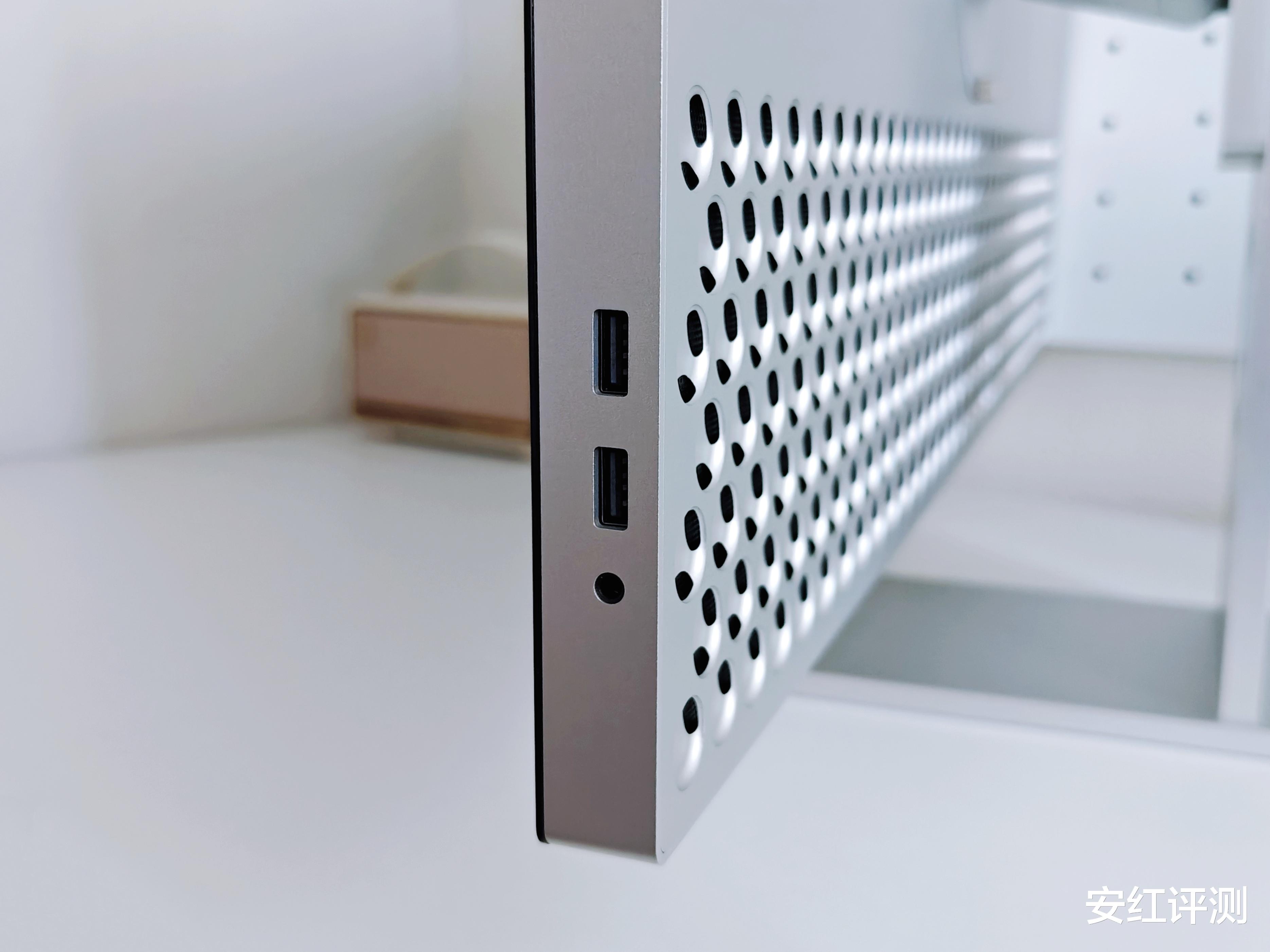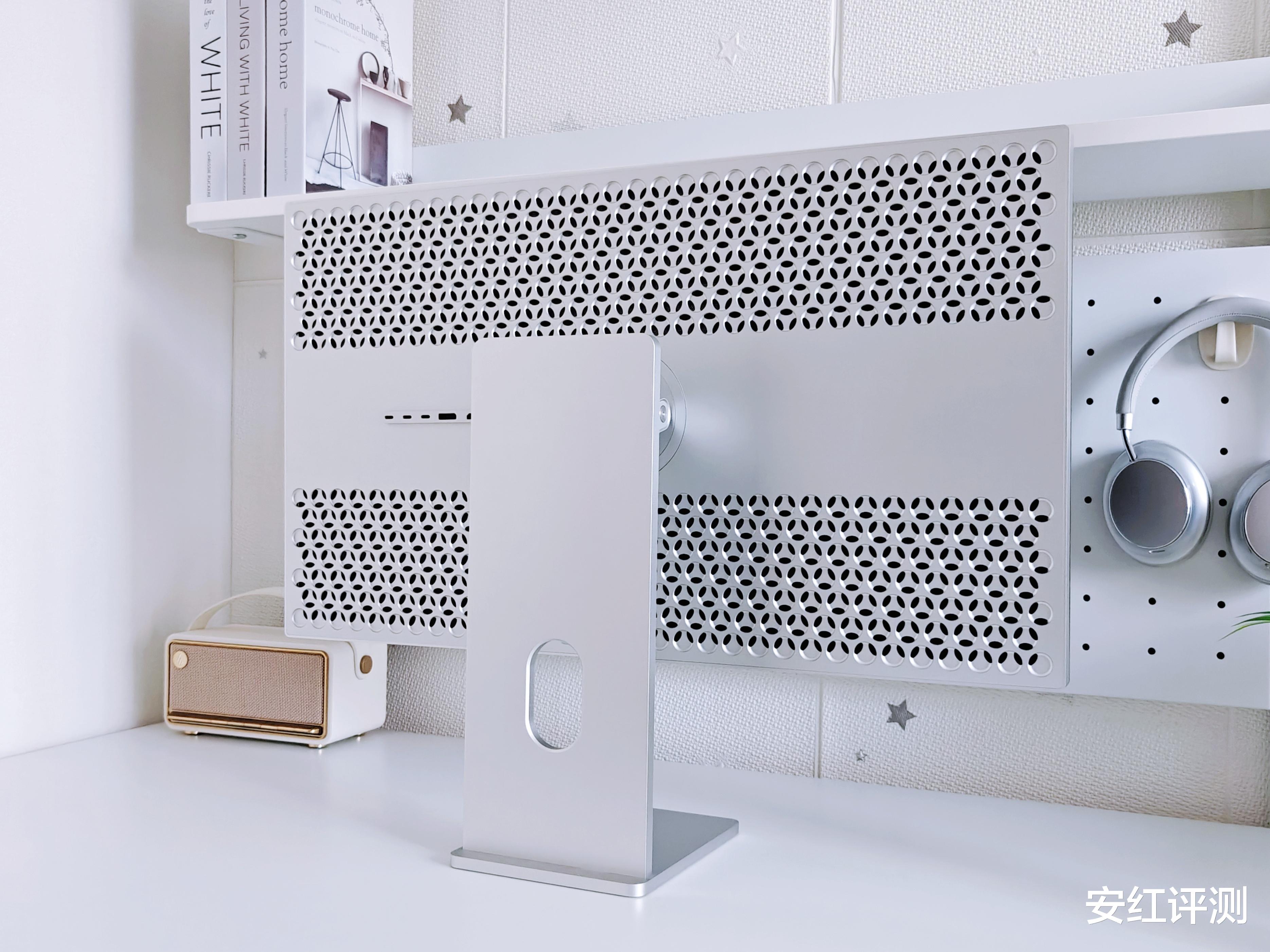 酷优客Kuycon G27P是一款27英寸显示器,全铝合金机身,阳极氧化喷砂工艺。2.2cm厚度+5.2kg重量,看上去非常轻薄,呈现Studio Display设计风格和质感。正面为四边等宽AR玻璃面板+IPS镜面屏幕,高屏占比带来更强浸入感,息屏时营造了一体化的视觉效果。而背板则采用铝合金定制散热片,炫酷蜂窝设计,搭配精心设计的内部气流布局,防尘同时也带来更佳的散热性能。