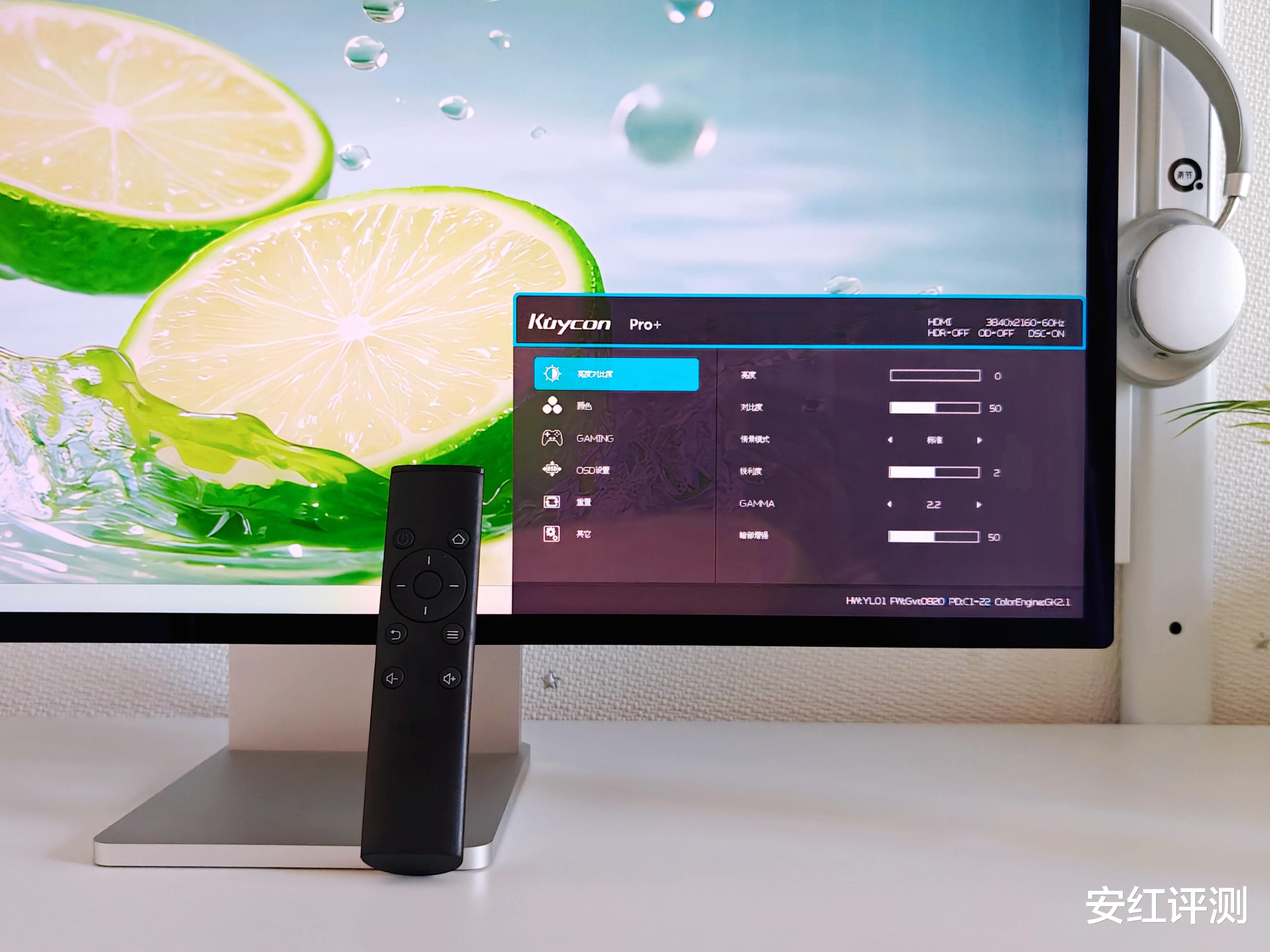 市面上多数显示器OSD操作都是通过多颗实体按键或者摇杆来实现,操作之前需要熟悉按键对应的界面。而酷优客Kuycon G27P创新配备了遥控器,其上按键对应不同的调节功能,例如按住上下键即可无极调节亮度。比起实体按键或者摇杆设计,这样操控更符合我的调节习惯,使用起来舒适快捷。