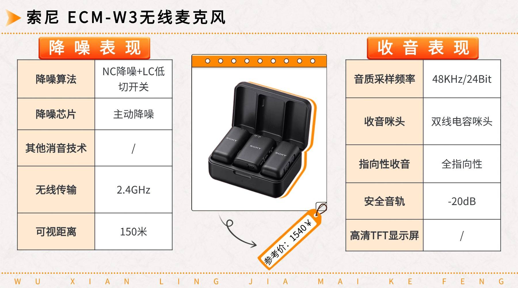 推荐理由:面向索尼粉丝或追求专业音质的高端产品,主打高纯净度音质和稳定表现。搭载48kHz/24Bit数字音频输出方案,配合高信噪比麦克风单元,音质纯净无杂质,支持数字降噪+低切滤镜,配备20dB安全音轨,传输稳定,操作便捷,更适合索尼生态用户和有专业拍摄需求的创作者。