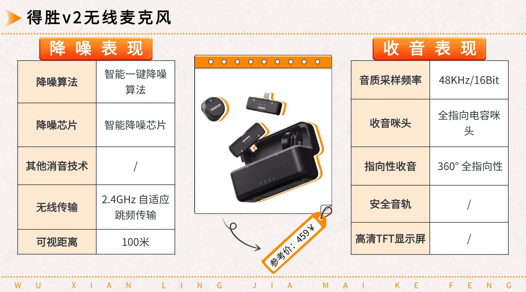 参数配置:适配多数主流手机、相机设备;采用2.4GHz技术,无遮挡环境下400米内稳定传输;搭配充电仓总续航36小时。